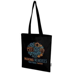 The Madras Blend tote bag made from 60% GRS certified recycled cotton and 40% GRS RPET is the perfect bag to give away during any event, conference or to use as a shopping bag for small groceries. The cotton density of 140 g/m2 cotton makes the bag sturdy, long-lasting and suitable to carry heavy items in the main compartment. With the 30 cm long shoulder handles this tote bag is easy to carry around. The print methods available for this tote bag are also GRS certified, making sure that the entire supply chain is transparent and certified. Made in India. Resistance up to 5kg weight. Volume capacity: 7 litres.