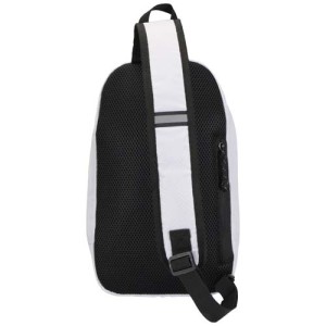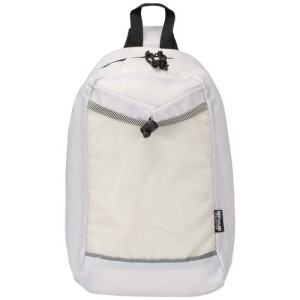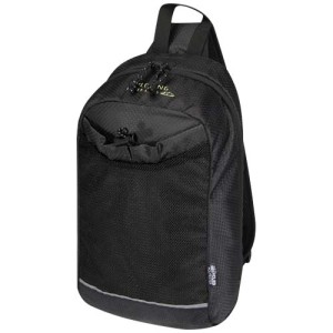 The Nomad hydration crossbody bag is made from GRS certified recycled ripstop fabric with a water-repellent finish, GRS certified RPET lining, and reflective elements. It is designed for fast hikes, trail runs, festivals, or any activity where you need to carry water and essential items without extra bulk. The bag includes a zipped main compartment with an inner sleeve pocket, a mesh front pocket with an elastic drawstring to hold a water bottle securely, and a large quick-access pocket on the back for your phone or other small items. The adjustable strap and breathable mesh back provide carrying comfort. Volume capacity: 6 litres.