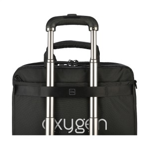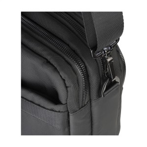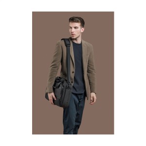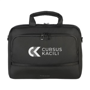Modern designer document bag from the Italian brand Tucano. Made with fabric produced from recycled plastic, including 19 recycled PET bottles. The bag has two spacious, padded compartments, one of which has a shock-resistant laptop compartment for a laptop up to 15.6 inches or MacBook Pro 16 inches. The zipped pocket on the front has an organiser for storing various accessories. There is an additional zip pocket on the back. With padded, adjustable and removable shoulder strap and double padded handle. Fully lined. Capacity approx. 13 litres.