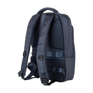 Laptop backpack from Italian brand Tucano. This modern, compact backpack is made with fabric produced from recycled plastic, including 20 recycled PET bottles. The spacious compartment has a mesh zip pocket and a shock-resistant storage compartment for laptops up to 15.6 inches or MacBook Pro 16 inches. The front zip pockets, one of which has two slip pockets, are ideal for storing accessories you want to keep close at hand. There is a hidden zip pocket on the back for safely transporting personal items and travel documents. Fully lined. The adjustable, padded shoulder straps and ergonomic back are equipped with breathable mesh for extra comfort. With a handy trolley strap and striking, high-quality zip fasteners. Capacity approx. 17 litres.