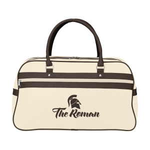 PVC/PU sports bag with a classic 70's look with lined inner, roomy main compartment and zipped pocket, sturdy handles, base inlay and studs. Made from quality materials and superbly finished. Capacity 21.5 litres.