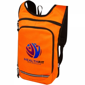 Made from 100% GRS recycled and water repellent fabric, the Trails backpack features one zippered front pocket and one zippered main compartment, and is compatible with a hydration water bladder. Reflective stripes for visibility and mesh backside for carrying comfort , making it a great sustainable choice for outdoor activities.