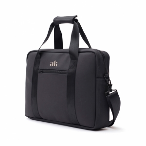 Modern and clean design computerbag. Function and form come together, besides the ordinary computer pocket this bag also has place for pens, documents and other belongings. The bag is produced in a water repellent material, with both shoulder strap and carry handles. It also includes an attached band on the reverse, so it fits your trolley when travelling.