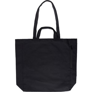 Introducing our recycled cotton shopping bag, a sustainable choice with short and long handles. It features a convenient side pocket with a zipper for securing small items. Embrace eco-friendly shopping with this versatile and stylish bag.
