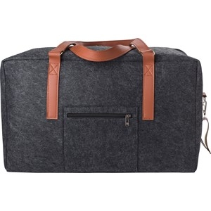 RPET felt travel bag - stylish, sustainable, and practical. With PU details, carrying strap, one large zippered compartment and a small pocket. Travel responsibly and fashionably with this eco-friendly bag.