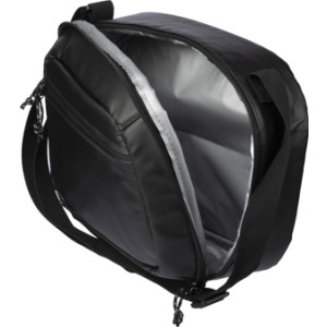 Polyester (600D) waist bag with PEVA foil lining. The bag features a main zipped compartment on the topside, a zipped pocket on the front and an adjustable shoulder strap.