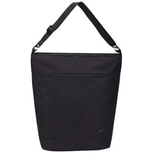 The Case Logic Invigo convertible tote bag has a refined, elegant design with thoughtful organisational features. It is made with 100% recycled 600D polyester exterior and 150D polyester lining. The padded laptop pocket protects a 15.6'' laptop and the tablet sleeve can hold a 12.9'' tablet. Stow the padded backpack shoulder strap to use the bag as a tote bag, or detach the main shoulder strap to use as a backpack. When using in tote mode, backpack straps stow away cleanly in small designated pocket on back panel. A front panel zip pocket provides easy storage for small accessories and quick access to essential items. In the main compartment there is a designated water bottle storage pocket and on the back panel is a large stash pocket to store even more items. This bag also features a luggage pass-through strap to attach the bag to rolling luggage for effortless travel.