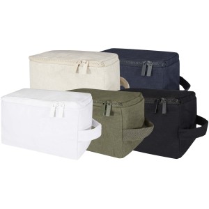 Toiletry organiser made of 500 g/m2 recycled cotton and recycled polyester, featuring a spacious main compartment with a secure zipper closure and multiple interior slip pockets, making it ideal for storing toiletry essentials. Its versatile design is also well-suited for organising small items like socks or chargers, keeping luggage neatly arranged. The bag incorporates Cyclo® recycled fibres where they use pre-sorted waste that determines the colour of the yarn. These fibres do not only reduce the demand for virgin resources but also exhibit a commitment to a circular life, embodying the essence of reducing waste and promoting a closed-loop system. Each bag also comes with an Aware™ tracer. This innovative feature allows users to trace the origins and journey of their item through a QR code, enhancing transparency in the supply chain and fostering a stronger connection between the product and its production process.