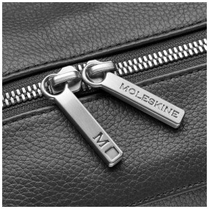 All the design features of the Classic Moleskine Bag Collection enhanced by premium leather, the ultimate companion for your ordinary and extraordinary journeys. The Classic leather backpack fits devices up to 15" and features adjustable, padded backpack straps with sliding metal buckles for a classic fit on the move, handy and secure backpack straps fastener, 2 side pockets to keep essentials within easy reach, metal zipper pullers with logo, my Moleskine notes pocket to store ideas, 1 secure zip-up pocket, 1 organizer with 2 pen holders and business card holder. Size: 32 x 42 x 11 cm. Volume 13L.