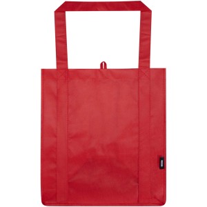 Made from durable and tear resistant non-woven RPET, the Liberty GRS certified recycled tote bag has a supportive bottom board, making it versatile and solid. The tote bag features a large main compartment and 25 cm long handles. Volume capacity: 29 litres. Resistance up to 12 kg weight.