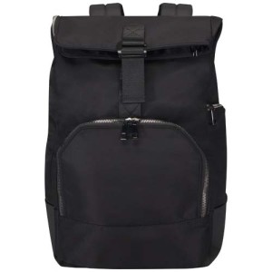 The Rhine rolltop backpack enables you to shift between work and leisure life seamlessly with its sleek style and versatility. Crafted with high-quality GRS certified recycled nylon, soft RPET lining, and premium PU leather elements. The backpack features a dedicated 15” laptop compartment with 2 additional pockets for electronic accessories, a main compartment with a practical L-zip entry and 2 pockets, a zipped organisational front pocket, and a side pocket. Enjoy maximum carrying comfort with the padded and adjustable shoulder straps, and PU wrapped top handle. Volume capacity: 18 litres. Resistance up to 10 kg weight. PVC free.